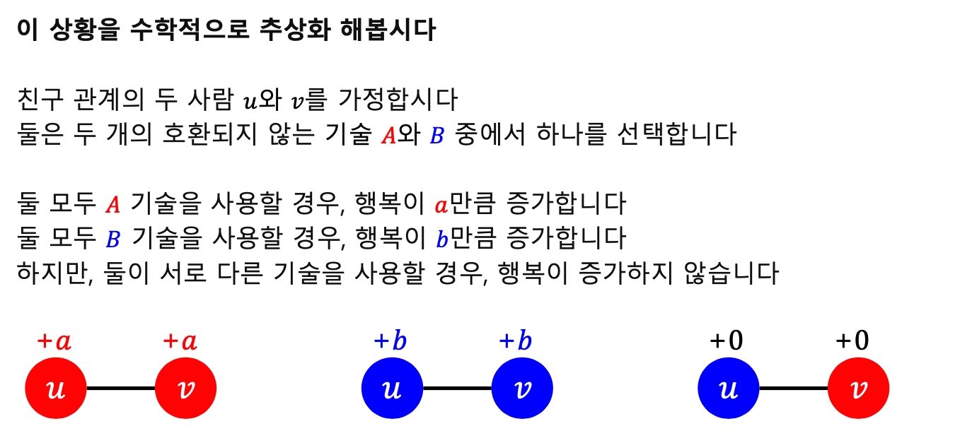 - 시드 집합(Seed Set)이라고 불리는 얼리 어답터들은 항상 𝐴를 고수한다고 가정하자.